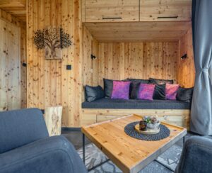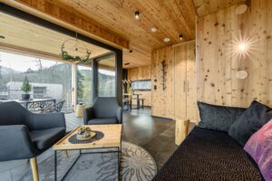 Moderne Innengestaltung und hochwertige Inneneinrichtung mit Einbaumöbeln aus Lärchenholz